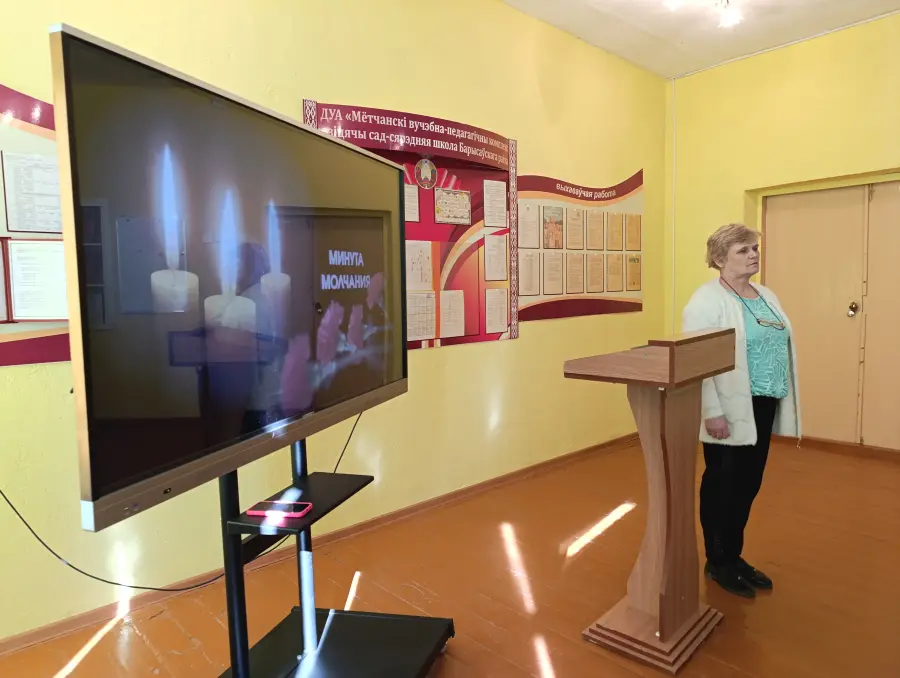 20 сакавіка, напярэдадні Дня памяці ахвяр Хатынскай трагедыі, прайшоў адзіны ўрок, прысвечаны трагедыі спаленай вёскі Хатынь. Хвілінай маўчання, пад гукі метранома школьнікі ўшанавалі памяць загінуўшых. Рабяты ўспомнілі факты аб Хатыні. Абмеркавалі важнасць захавання гістарычнай памяці. Няма нічога каштоўнейшага, чым чалавечае жыццё і мір на Зямлі, а памяць - гэта адказнасць кожнага пакалення. Да такога вываду прыйшлі навучэнцы. Напрыканцы ўрока яны сфармулявалі наказ жывым і напісалі пісьмо будучаму пакаленню.